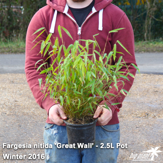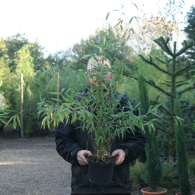 A beautiful, dense, clump-forming bamboo with elegant, dark green canes and masses of small narrow green leaves. This form is a selected seedling from a recent flowering of Fargesia nitida. Height 4m. Spread 1.5m. Prefers semi shade. Hardy. Water well bef