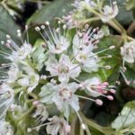 Chrysosplenium macrophyllum is a beautiful and highly useful evergreen ground cover plant with exquisite white-green tufts of starry flowers with pretty pink centres. The foliage is fuzzy and tactile, with lanceolate glaucous dark green and hints of burgundy. Although flowers appear during the mid-later winter, the plant provides year-round interest and cover as a foliage plant.