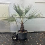 Brahea armata the fabulous ‘Mexican Blue Palm’ is a spectacular palm similar in shape and habit to Trachycarpus fortunei but differing but being even chunkier with slightly larger stiff blueish grey leaves. Despite originating from Mexico Brahea armata shows remarkable hardiness, the first time I saw a large specimen well over 60 years old was in a courtyard garden in Tuscany where obviously the summers are hot but equally the winters can be very cold and wet giving hope to cultivation here in the U.K. Well that was a lifetime ago and I’m happy to report that yes Brahea armata will survive outdoors in our climate proved it is given a sheltered sunny hot position in fertile but free draining soil and be prepared to protect it from the worst of the winter with a cosy fleece jacket should snow and ice be around. A lot is said about how hardy these palms are tolerating temperatures well below freezing and yes this is true but only for short periods and generally in climates where the day temperature rise well above freezing during the day so please take my advice and wrap your precious palm unless you live in a very special micro-climate either urban or coastal, there is a beautiful specimen on the coast protected from the wind in garden near our nursery that to my knowlegde has never been protected, but you have been warned.