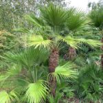 Chamaerops humilis is a spectacular and hugely versatile hardy palm for British Gardens often known as the Mediterranean Fan Palm, we simply call them Chamaerops – less of a mouthful and for most, easier to spell! Chamaerops are one of the few truly European palms, originally considered to have originated from the island of Crete. Nowadays Chamaerops can be seen growing all over the world, often naturalising into surrounding countryside. I have seen Chamaerops growing in exposed coastal conditions, through to dappled shady spots in the centre of towns. Unlike Trachycarpus palms, Chamaerops have tough, robust leaves and stems making them altogether more tolerant of exposure to wind. Chamaerops generally grow in a multi-stemmed formation and are best known as ‘bushy palms’, often growing as wide as they are tall. In the UK Chamaerops rarely reach more than three metres high and would take 20 or more years to achieve this. They respond very well to feeding and can be pruned hard each year to remove old or damaged leaves. The compact and bushy nature of Chamaerops, and the fact that naturally they can be found growing in poor, stoney soil, makes them ideal candidates for raised beds or container cultivation where their architectural form looks spectacular. I’ve also seen them growing in a slightly shady spot amongst Trachycarpus and bamboo in a rural jungle garden in southern England, again, to spectacular effect. In short, I would say that Chamaerops is the most versatile ‘hardy’ palm, it’s easy to grow as long as you don’t live in a particularly cold location and worth a try if you fancy a bushy palm tree. I’ve had them growing in my West Sussex garden for well over 15 years and have only resorted to protecting them from severe cold for a couple of winters. One thing I like about Chamaerops is that even if the leaves are damaged by the winter, in spring, new growth is rapid and fresh leaves are soon produced, particularly if you feed your Chamaerops. I recommend a seaweed based fertiliser both as a drench and as a spray on foliar feed, plus the addition each spring, of a good handful of pelleted poultry manure.