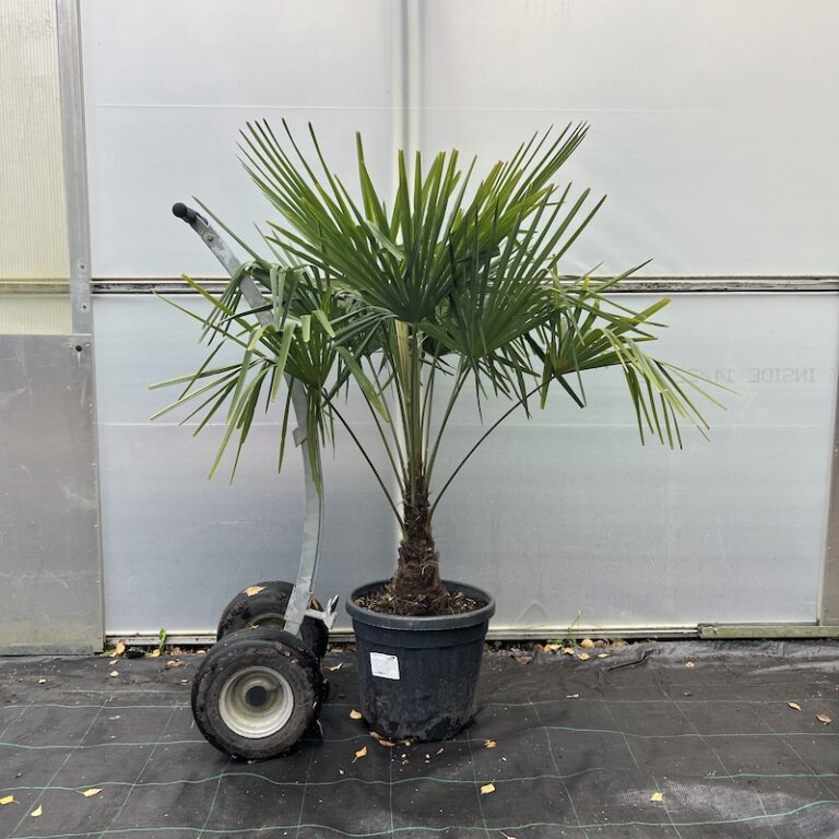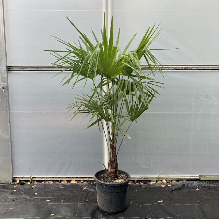 Here in West Sussex, we grow many Trachycarpus in the ground in our heavy, brick-making, wet in winter, dry in summer clay with huge success, with palms often achieving 30-40cm of trunk growth in a single season. We’ve had so much success in fact that we now grow some of our Trachycarpus commercially in the ground, ready to be lifted and potted for sale when the time comes.