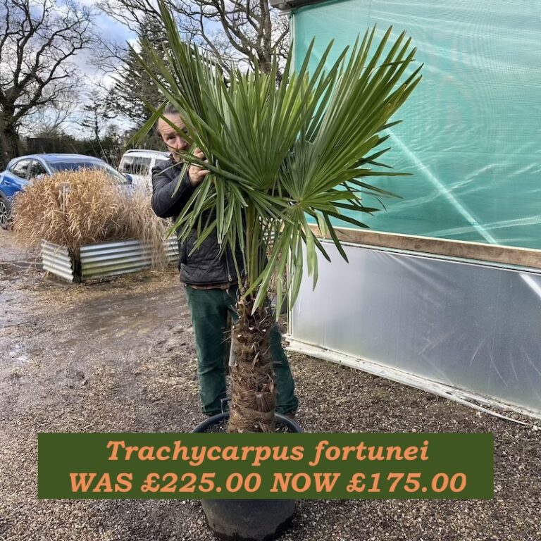 Very knowledgeable and helpful staff when discussing what type of tree would suit a coastal garden. Great service and efficient delivery. Fabulous trees – a trachycarpus fortunei and eucalyptus. Will definitely buy more trees for the front garden in the new year.