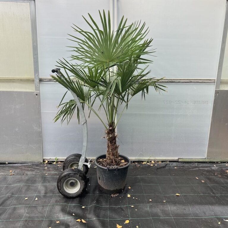 As for cultivation, with all palms (and this goes for other species we grow here) the key is to give them the best possible start when planting in your garden. We recommend adding well-rotted organic compost to the prepared ground, at least a 50/50 mix with your existing soil. Make sure that you carefully plant your palm at the same level as the compost in the container. Never plant deeper, in fact, if in doubt, plant a little higher. Planting is best undertaken when the soil is warm, late spring through to early autumn.
