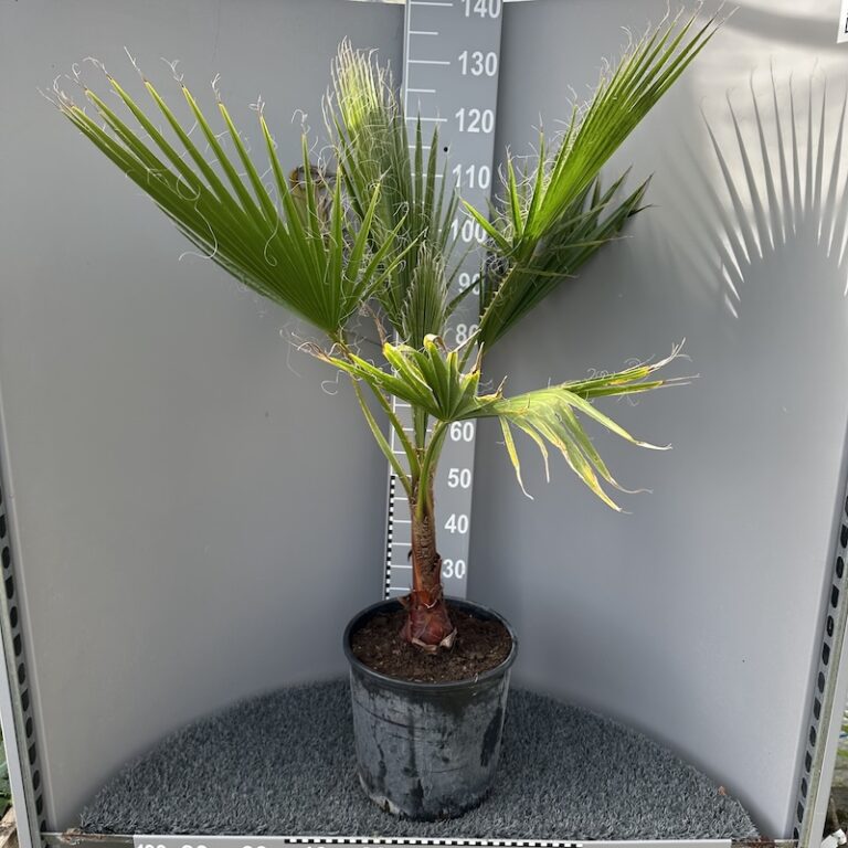 Washingtonia robusta commonly known as the ‘Sky Duster Palm’ is very impressive fast growing palm with huge bright green leaves and a thick sturdy trunk. Originating from Southern California and Northern Mexico this is perhaps one of the most widely planted palms around the mediterranean to sub tropical zones worldwide due to its ease of growth and hardiness.